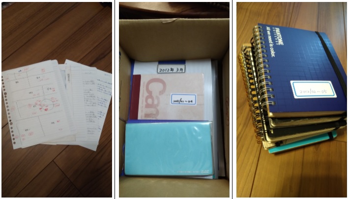 買い物レシートに混じって乗り物予約票、出張宅急便送り状(単身赴任先から自宅に送った段ボール箱)、送別会の写真や給与明細・源泉徴収票まで出て来ました。懐かしい~
