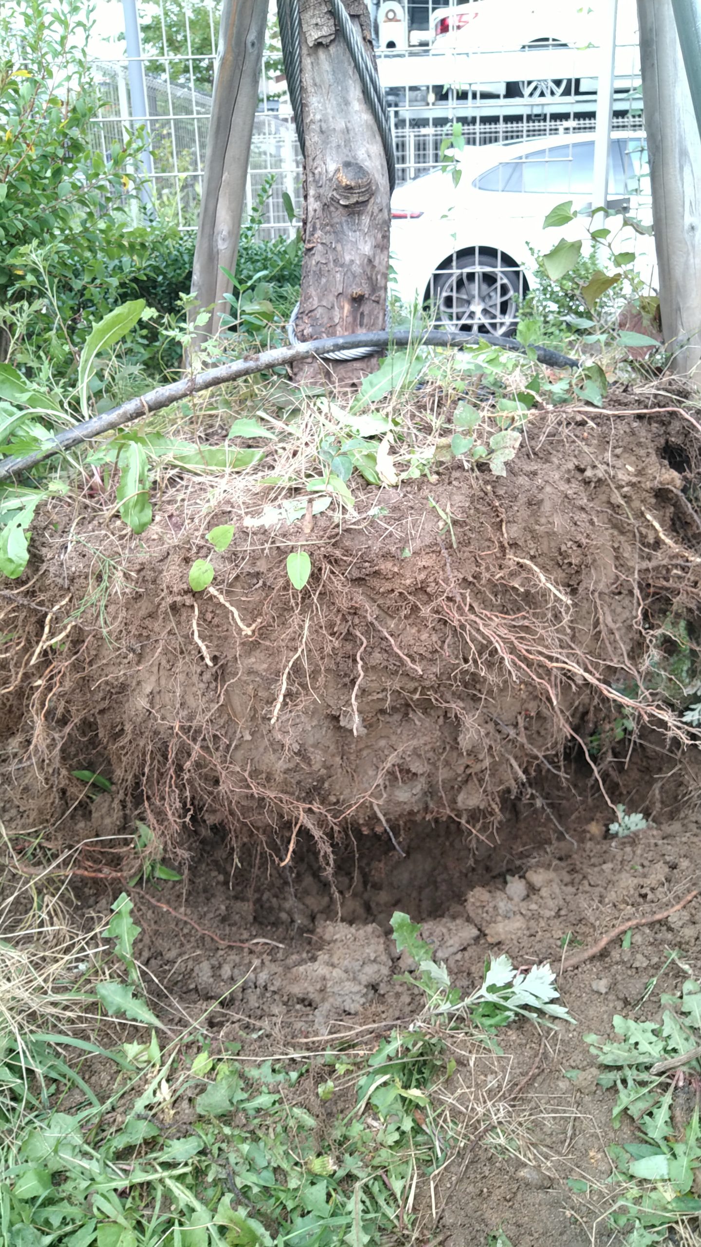 装置の組み立て、木の周囲の草刈り、幹の切断、根っこが抱えていた土を落とす、等々の作業も含めて児童公園にはちょうど1時間居ましたが、ハンドルを動かしたのは5分だけです。素人の僕にも大変効率的に抜根作業が出来ました。YouTube動画で見た通りでした。