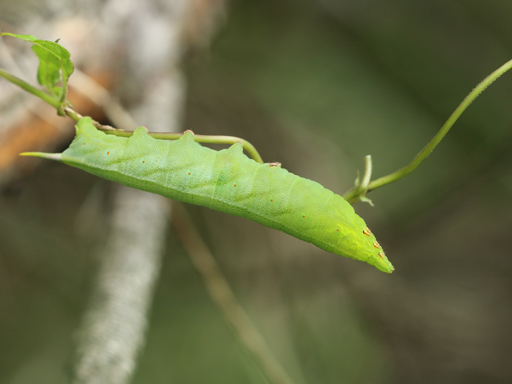 (ウチに帰ってググってみたところ、ホシホウジャクという蛾の幼虫でした)。