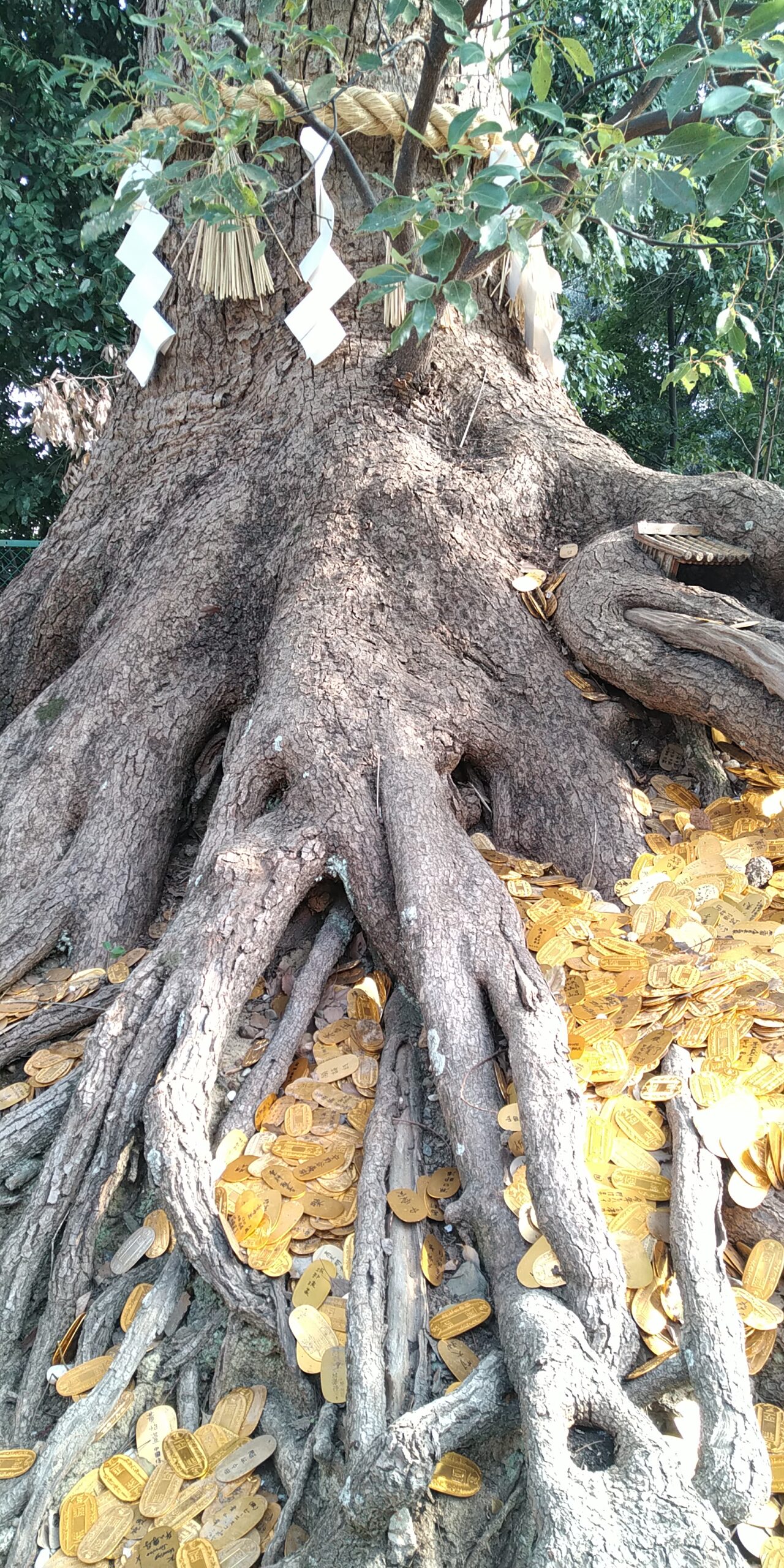 おみくじに長蛇の列をなしていたり、楠の根元がこんなことになっていたりして、今の僕の波長とは合わない感じの場所でした。