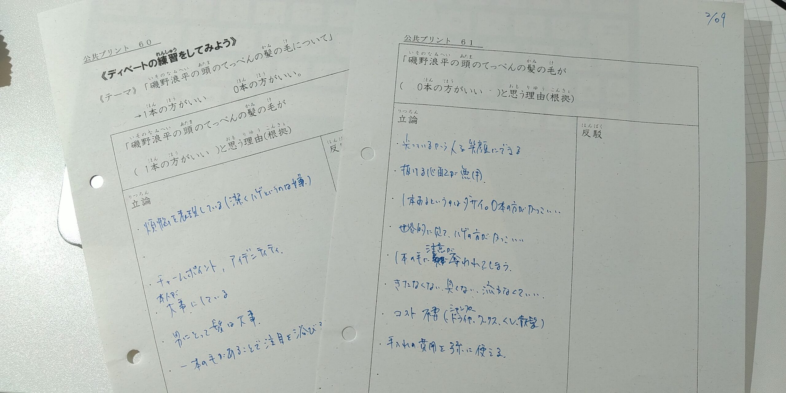 社会の先生は余裕があるらしく、2回続けてディベートの練習をするそうです。